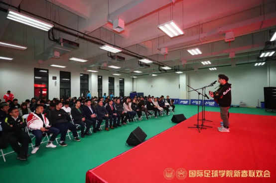 最后,刚刚从云南泸西高原足球训练基地参加完超冠联赛24强赛的男子超级组足球队全体教练员、队员共同登台演唱,晚会在《难忘今宵》的旋律中落下帷幕。