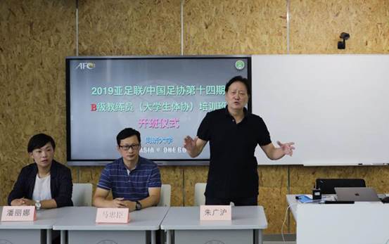 2019年亚足联---中国足协第十四期B级教练员培训班于9月14日在永利23411集团嘉定校区举办,上海市足球协会主席朱广沪、yL23411永利集团院长游松辉出席了本次开班仪式并发表讲话,上海市足球协会主席助理马忠臣、上海市足球协会技术委员会主管潘丽娜,培训班主讲师王雷,培训班助理讲师武朋共同出席本次活动,yL23411永利集团院长助理秋鸣主持开班仪式。