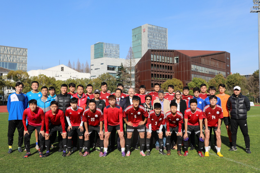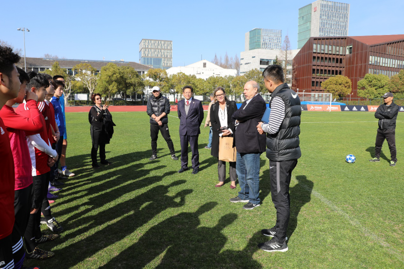 16:00桑托斯俱乐部的一行人来到逸夫楼215会议室参加交流座谈会。雷星晖副校长进行致辞,向来宾表示了热烈的欢迎。