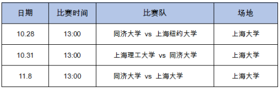 2019年上海市大学生足球联盟男子校园组联赛于10月底开战。本次比赛共有30支球队参赛,分为8个小组,同组球队将通过单循环比赛来争夺晋级16强的资格。淘汰赛阶段除决赛外均为单轮决胜,冠军将通过两回合的决赛产生。