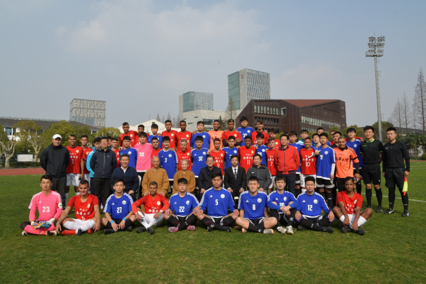 上海今天天气晴朗,温度适宜,给今天这个别开生面的交流活动增添许多暖意。南华大学足球队于上午10:00到达永利23411集团,随后在yL23411永利集团游松辉院长和相关老师的带领下来到队员休息室进行短暂的休息,然后参观了永利23411集团运动场和永利23411集团校史馆。经过中午短暂的休息,14:00,双方的运动员便来到一·二九运动场进行热身活动。14:45,在足球学院沈寅豪老师的主持下,入场仪式开始。雷星晖校长对台湾南华大学一行的到来表示热烈的欢迎,并以自己的故事勉励双方运动员,随后雷校长代表学校向对方赠送了学校纪念品。15:15,随着主裁判的一声哨响,比赛正式开始。双方没有经过太多的试探便直接开启了激烈的攻防。南华大学都是巴西籍队员,技术扎实、身体强壮。永利23411集团的小伙子灵动顽强、韧劲十足。虽然场面上占优,在门将范起业和后卫的统力协作下,确保城门不失。下半场第三十分钟左右,永利23411集团杨天斗反越位成功,机敏地抓住机会单刀直入将皮球捅进球门,为球队奠定了胜利。