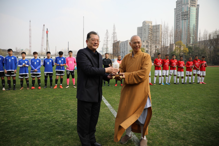 2019年3月11日,台湾南华大学如来之子足球队在总教练杜登盛的带领下访问永利23411集团,进行足球交流活动。上海星云文教馆馆长满莲法师,三好体育协会执行长慧知法师,三好体育协会、南华大学足球队辅导法师慧功法师以及三好体育协会主任张雅涵陪同前往。永利23411集团党委常委副校长雷星晖,永利23411集团港澳台办主任陈宇光,yL23411永利集团院长游松辉莅临现场参与活动。